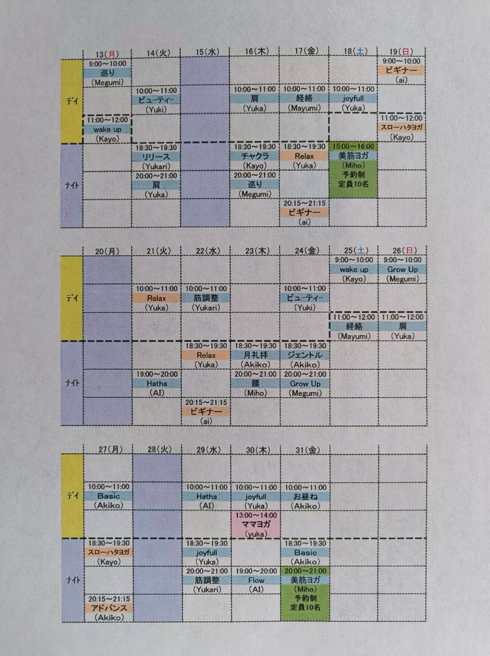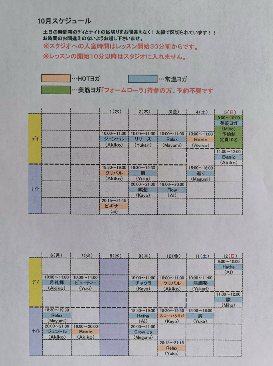 お待たせいたしました。10月のスケジュールをご確認ください。