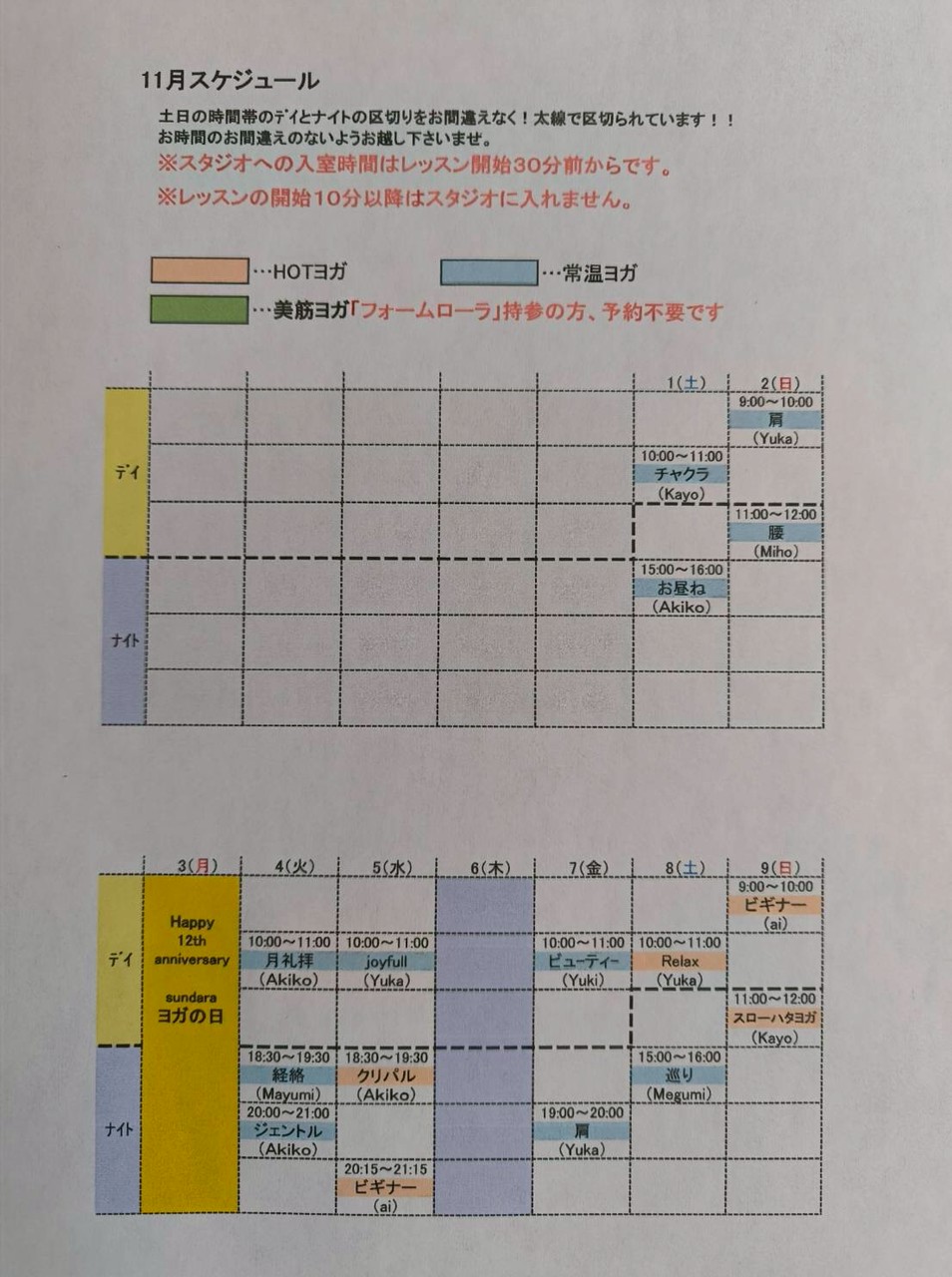 11月3日「sundara・ヨガの日」として、終日ヨガクラスを開講いたします✨